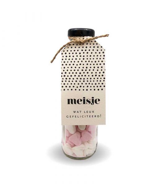 Cadeau flesje met hartjes - Geboorte Meisje