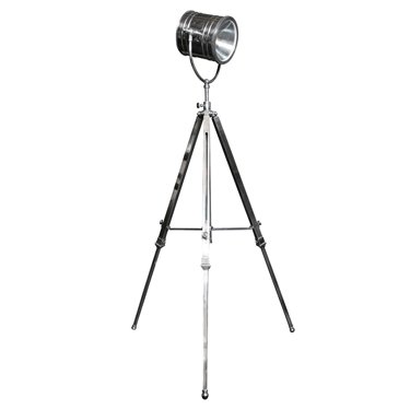 Deze industriele vloerlamp Broadway in het antiek zilver is een stoere driepoot vloerlamp met industriële spot.